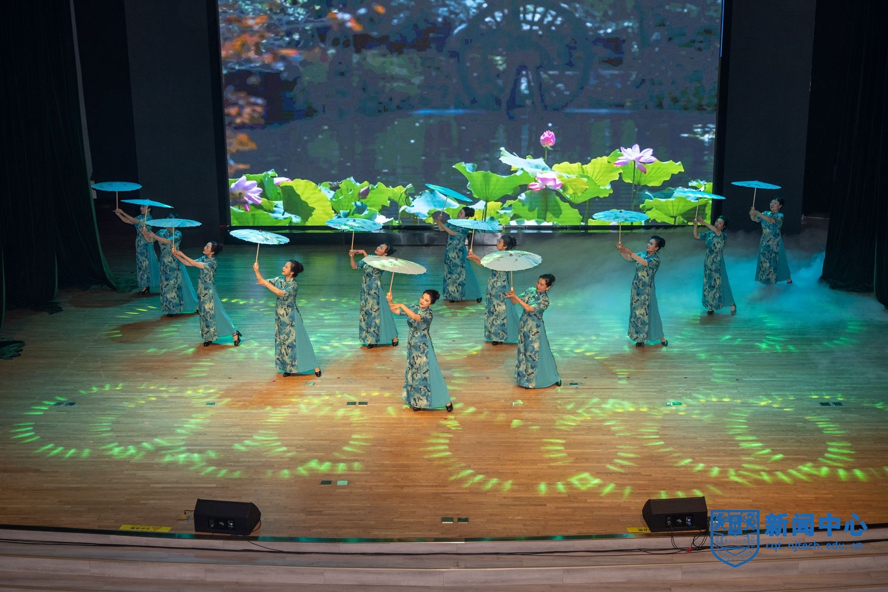 儀式上,全體人員欣賞了教工音樂協會帶來的曲目《長大后我就成了你》和離退休老教工們帶來的旗袍秀《石城雅韻》。