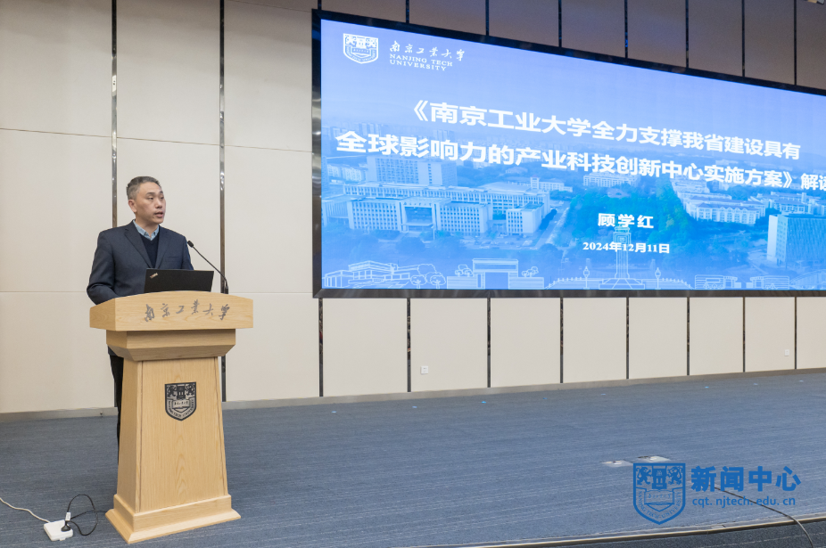 12月11日下午,《南京工業(yè)大學(xué)全力支撐我省建設(shè)具有全球影響力的產(chǎn)業(yè)科技創(chuàng)新中心實施方案》(以下簡稱《實施方案》)發(fā)布會暨“新質(zhì)生產(chǎn)力賦能高質(zhì)量發(fā)展”主題論壇在江浦校區(qū)弘毅樓五樓報告廳舉行。省發(fā)展改革委二級巡視員郝琳、省教育廳一級巡視員袁靖宇、省工信廳二級巡視員喬亦哲、省農(nóng)業(yè)農(nóng)村廳二級巡視員張玉慶、省應(yīng)急管理廳副廳長王春江、省生產(chǎn)力促進(jìn)中心主任、黨委書記趙志強(qiáng)、江北新區(qū)管委會副主任王偉、鼓樓區(qū)委書記王安偉,全體校領(lǐng)導(dǎo)出席會議。會議由黨委副書記吳勝紅主持。